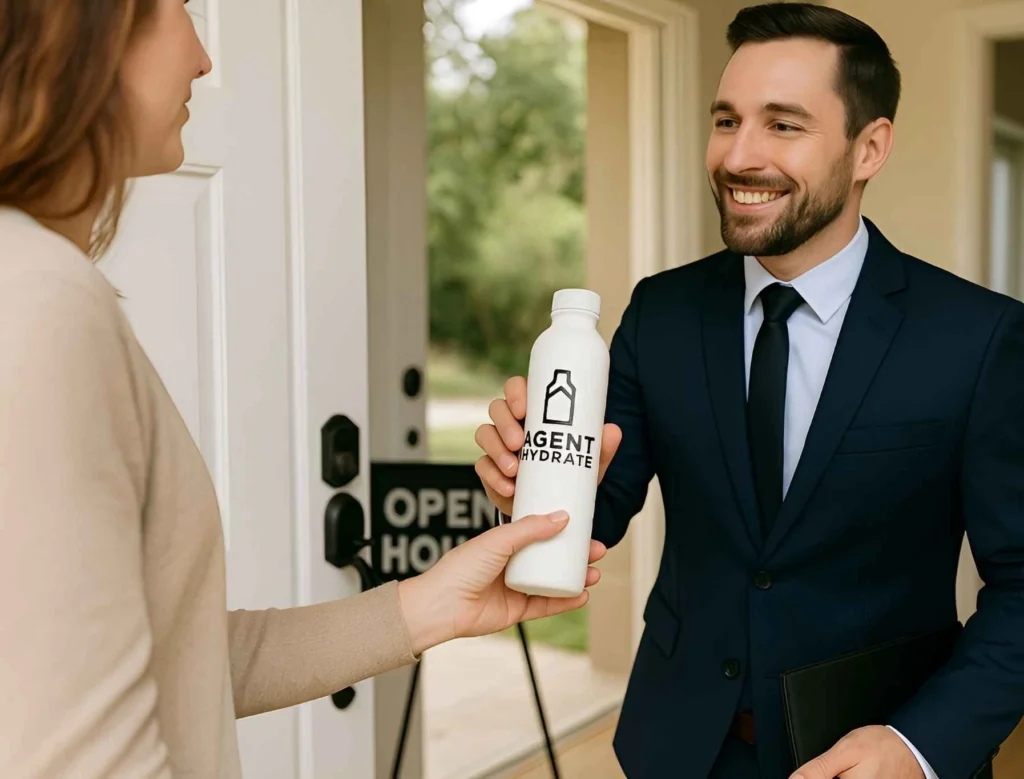 At Agent Hydrate, we go beyond the business card. Instead of handing out something that gets tossed away, we equip agents with premium, eco-friendly, branded water bottles. A marketing tool clients actually keep, use, and remember. Each sip turns into a brand impression and every bottle becomes a lasting conversation starter.